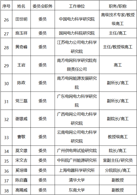 員兼秘書(shū)長(zhǎng),楊迪、閆華光任委員兼副秘書(shū)長(zhǎng),秘書(shū)處由南方電網(wǎng)科學(xué)研究院有限責(zé)任公司承擔(dān)。
