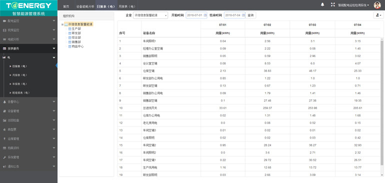 能耗數(shù)據(jù)報表的生成導出和自動打印功能