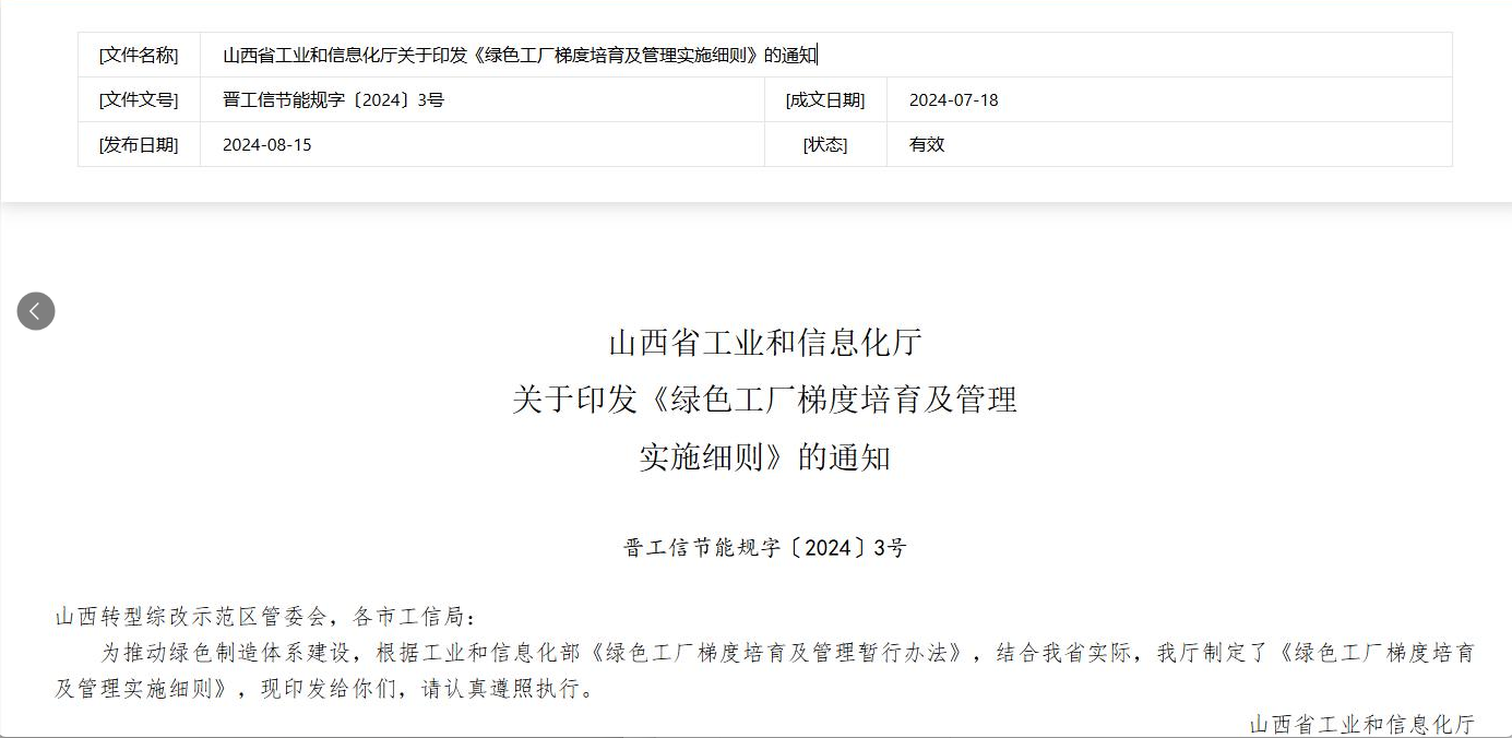 加快建設(shè)2025年山西省綠色工廠申報指南