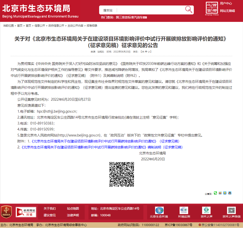 “環(huán)評+碳評”?北京發(fā)布最新公開征求意見